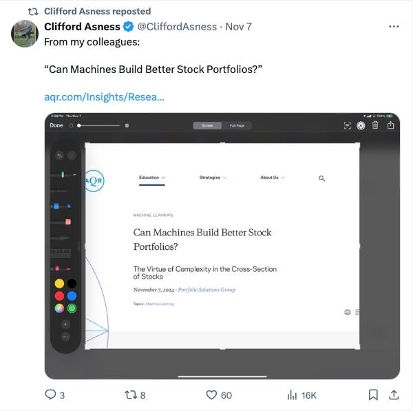 In a recent article shared by Clifford Asness from AQR, new insights reveal that machine learning models are outperforming traditional stock selection methods. By capturing complex patterns in data, these models show a promising edge in portfolio construction, achieving returns up to twice as high as conventional approaches.